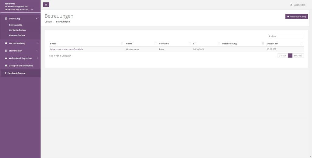 Navigieren Sie im System auf Betreuung ⇾ Betreuungen dort finden Sie eine Liste alle Betreuungen.