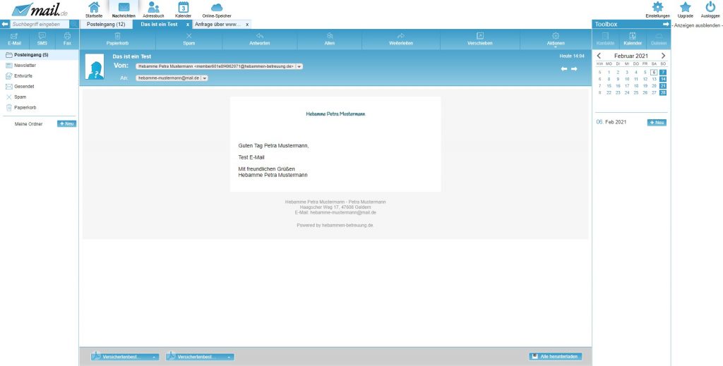 Optional können Sie eine Kopie an sich selber senden. So haben Sie die E-Mail auch für Ihre Unterlagen. Wichtig: Im System werden die E-Mails nicht gespeichert.