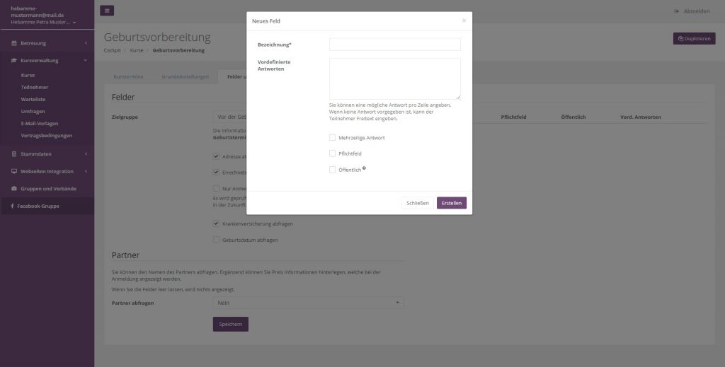 Sollten die Felder Kursverwaltung nicht ausreichen, können diese um eigene Felder erweitern.