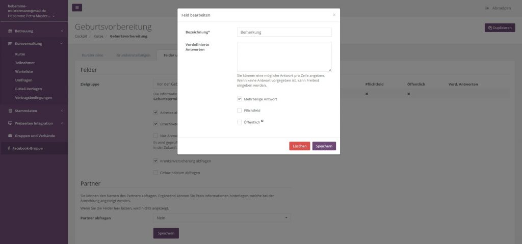 Öffentlich: Das Feld kann vom Teilnehmer in der Anmeldung ausgefüllt werden,