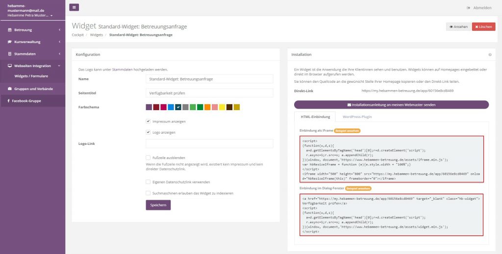 Nachdem Sie das Widget konfiguriert haben, können Sie es in Ihrer Homepage veröffentlichen.