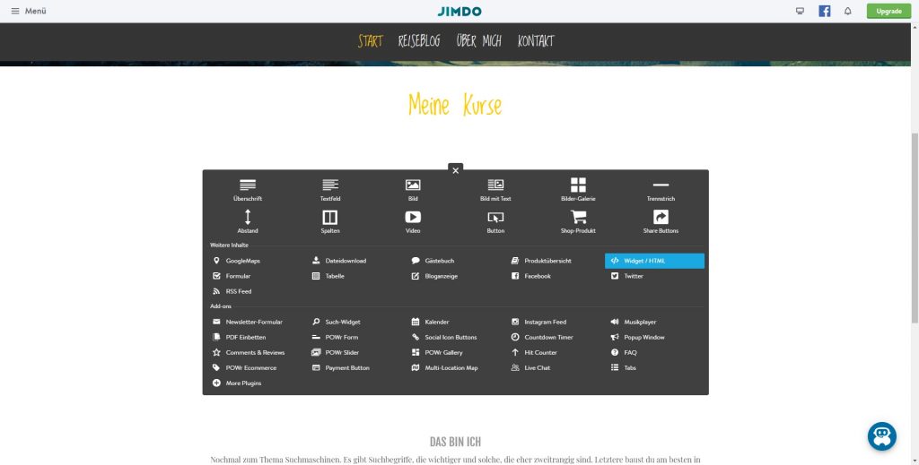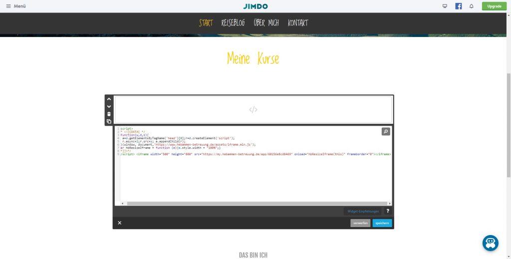Sobald der Quelltext kopiert wurde, navigieren Sie in Jimdo