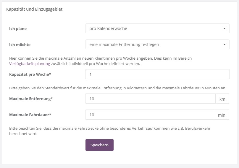 Einzugsgebiet oder maximale Fahrtdauer/Entfernung