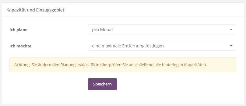 Zunächst müssen Sie entscheiden, ob Sie eine Kapazität pro Monat oder pro Kalenderwoche hinterlegen möchten.