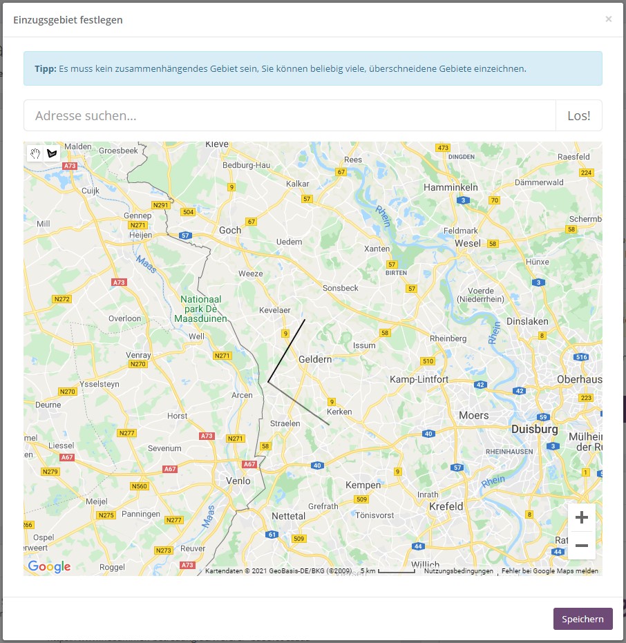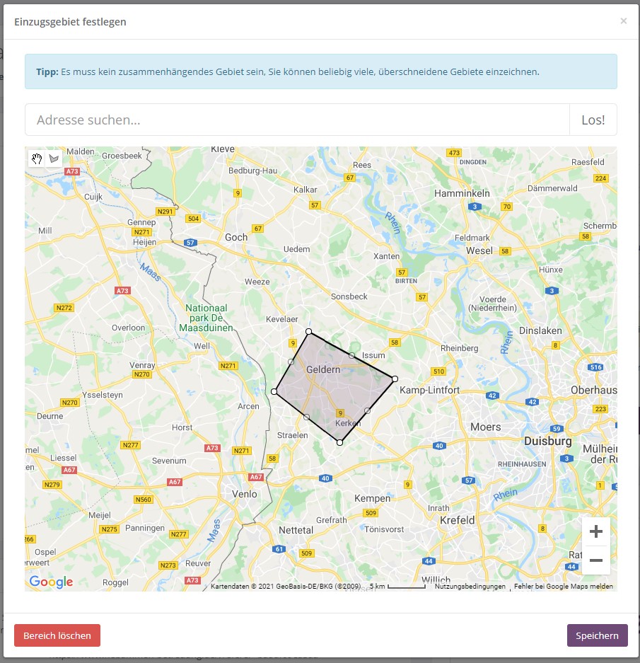 Über das Feld Adresse suchen können Sie testen, ob eine Adresse noch im Einzugsgebiet liegt.