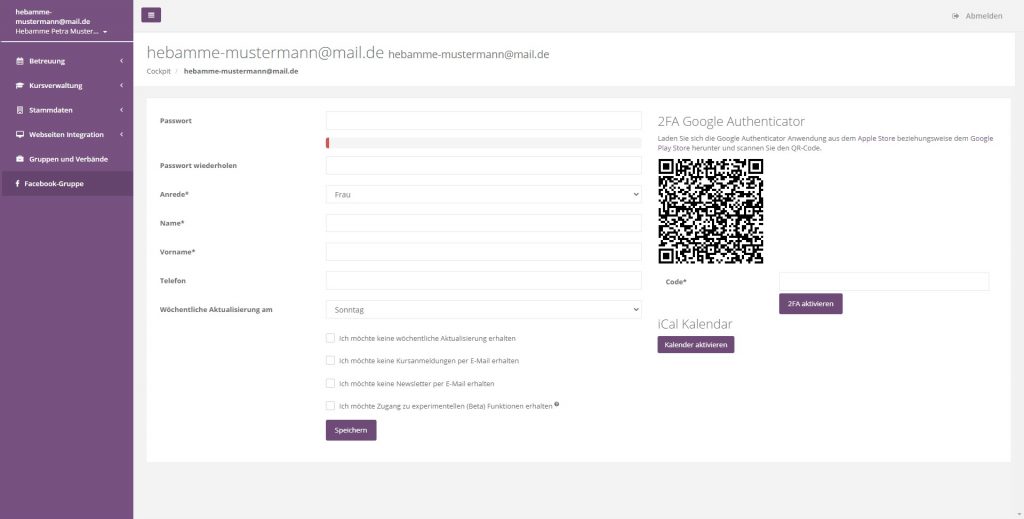 Nun kommen wir in eine Seite, auf der wir die Einstellungen zum aktiven Benutzerkonto bearbeiten können. Hier tragen wir Vorname und Name ein und können auch eine Zwei-Faktor-Authentisierung aktivieren und so das Konto absichern.