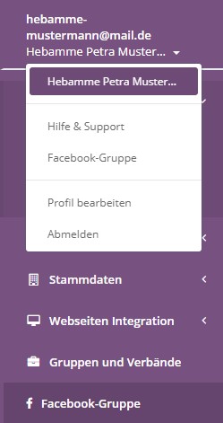 Nach der Anmeldung klicken wir auf den Pfeil unterhalb des Benutzernamens. Es erscheint das Benutzermenü.
