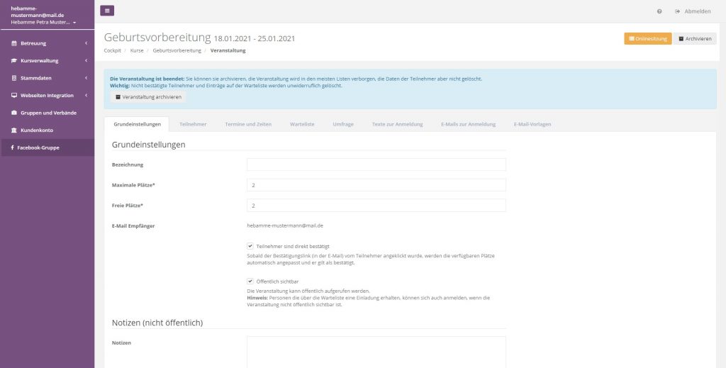 Sie können keine Änderungen an der Veranstaltung mehr durchführen.