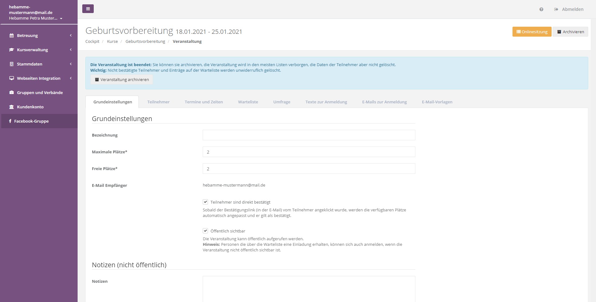 Sie können keine Änderungen an der Veranstaltung mehr durchführen.