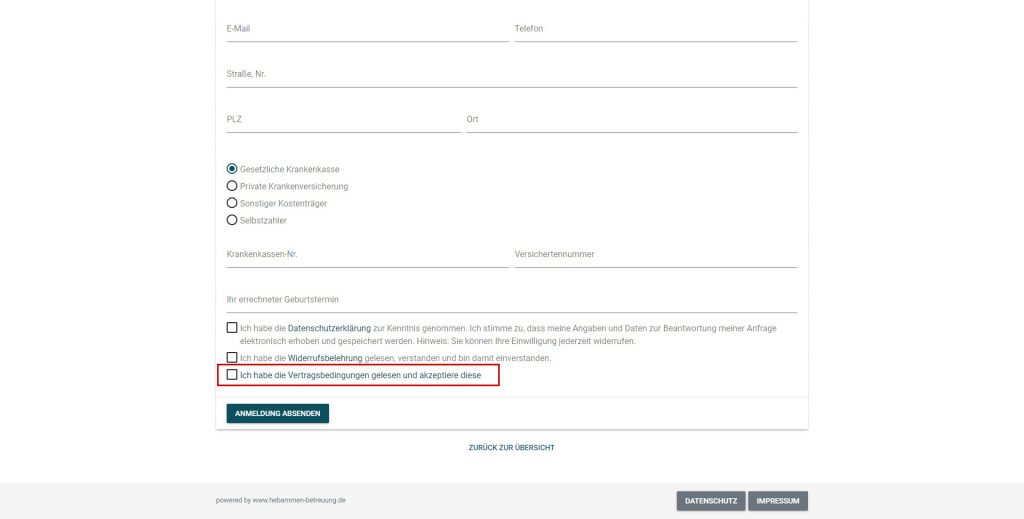 Der Checkbox-Text wird unterhalb der Anmeldung angezeigt und ist der Text, den der Teilnehmer bestätigt.