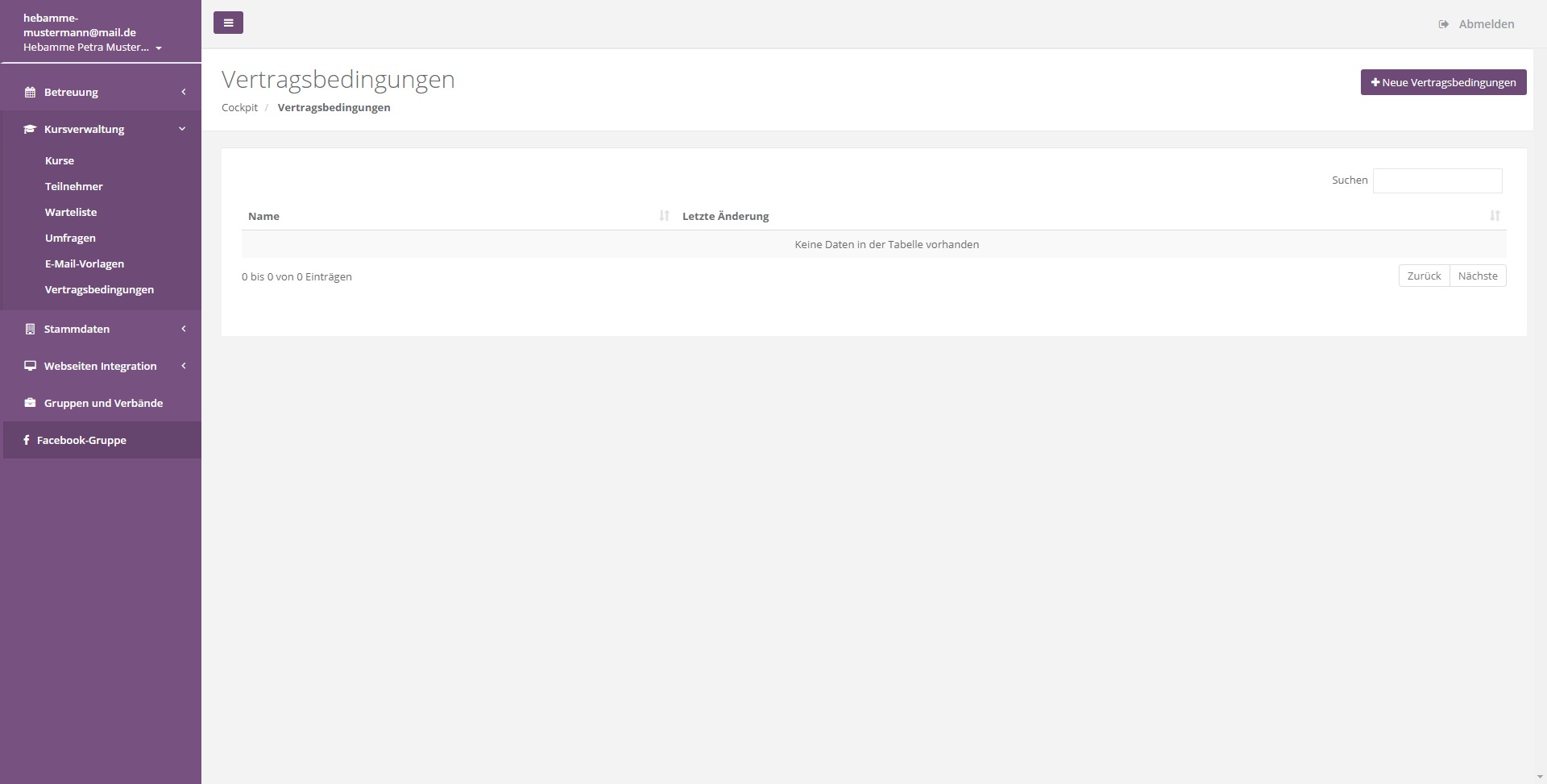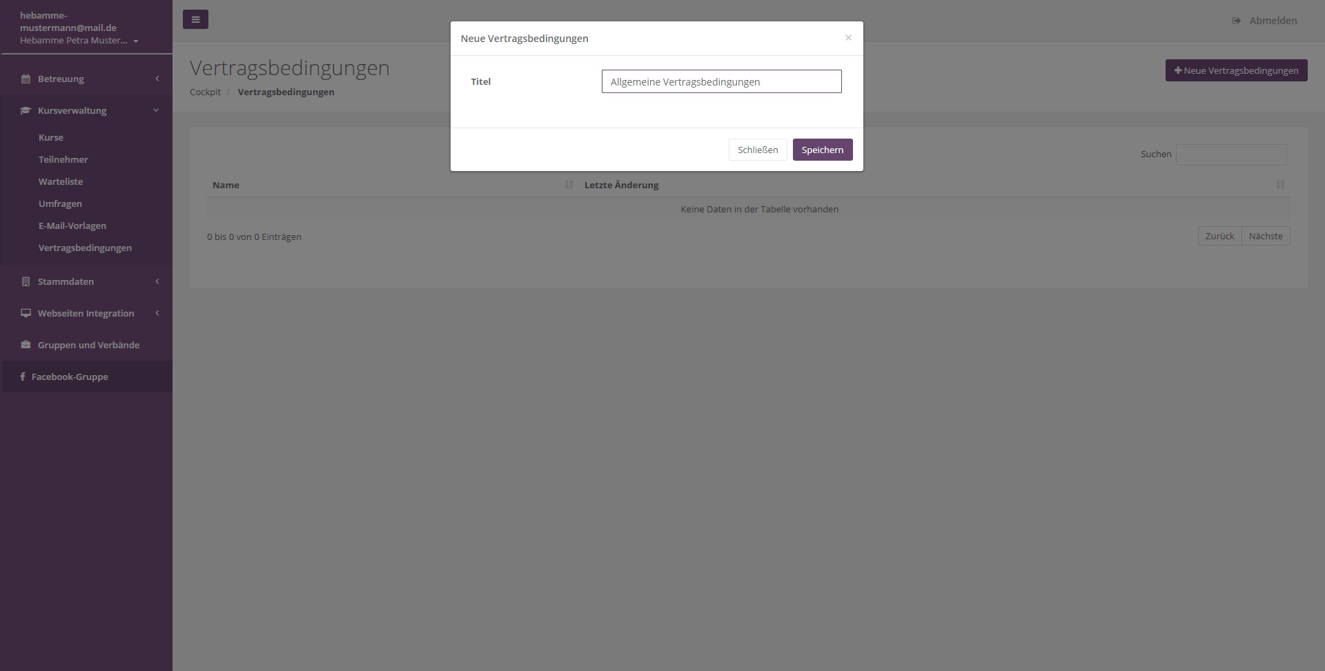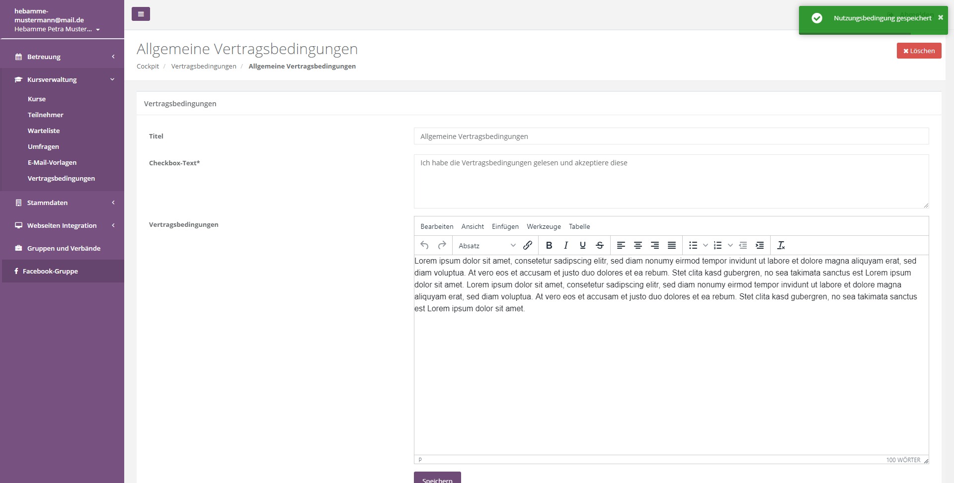 Sie haben die Möglichkeit im System unterschiedliche Vertragsbedingungen zu hinterlegen. Diese werden von den Teilnehmern des Kurses akzeptiert. Sie können beliebig viele Vertragsbedingungen hinterlegen und so für unterschiedliche Kurse unterschiedliche vertragliche Grundlagen setzen.