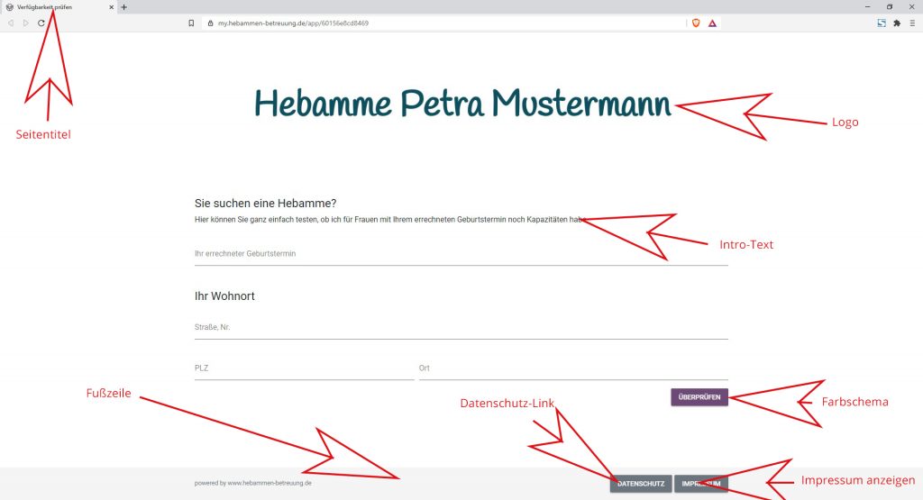 Ein Widget ist die Anwendung (das Formular), die Ihre Klientinnen sehen und benutzen. Widgets können auf Homepages eingebettet oder direkt im Browser aufgerufen werden.