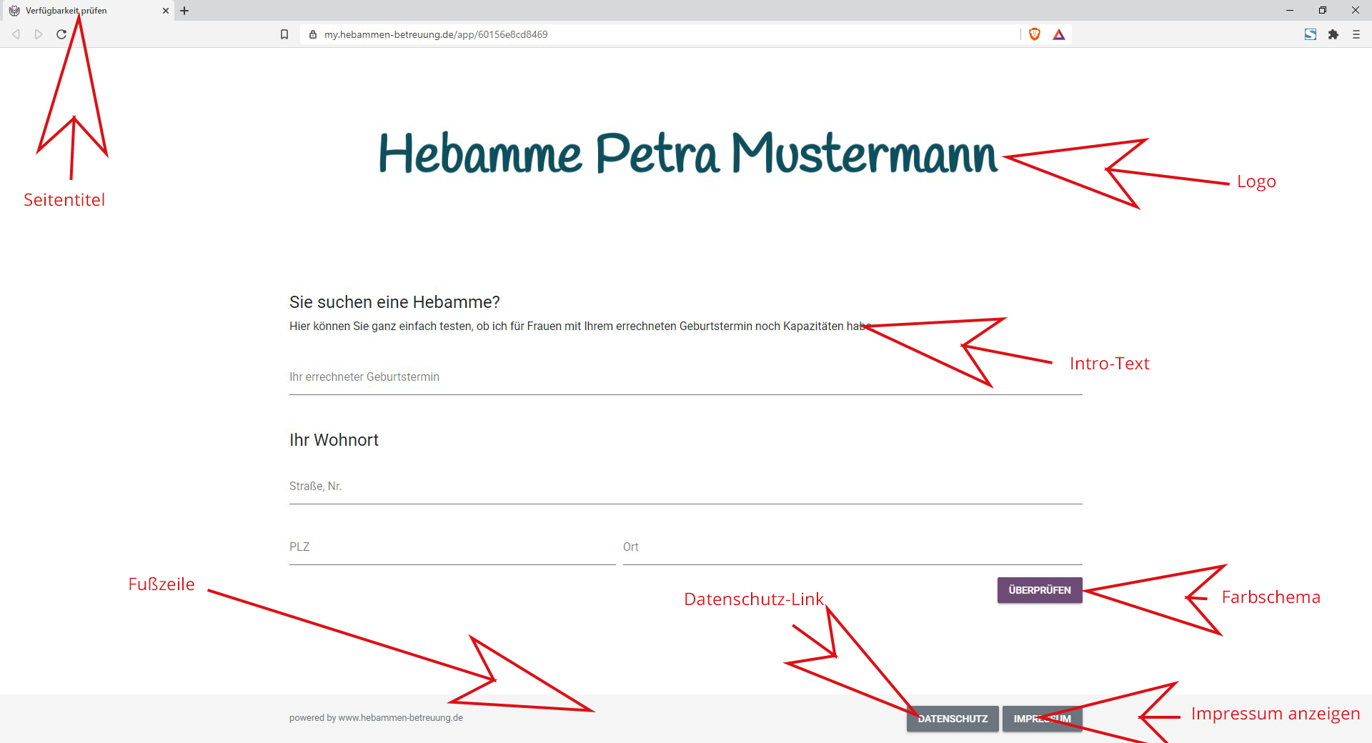 Ein Widget ist die Anwendung (das Formular), die Ihre Klientinnen sehen und benutzen. Widgets können auf Homepages eingebettet oder direkt im Browser aufgerufen werden.