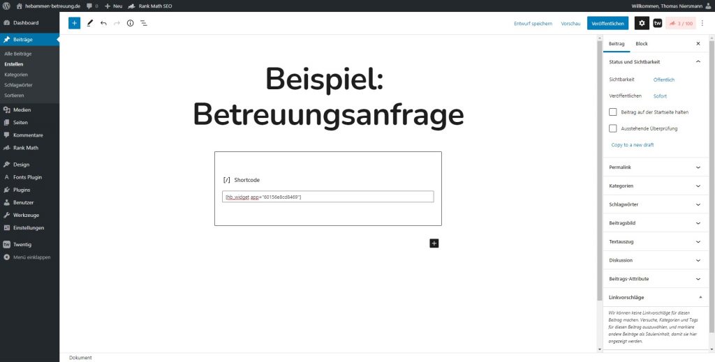 Nachdem Sie das Widget konfiguriert haben, können Sie unser WordPress-Plugin nutzen, um es in Ihrer Homepage zu veröffentlichen.